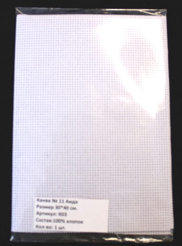 К03, Канва № 11 Аида, 100 % хлопок, цвет белый, размер 50*50 см.
