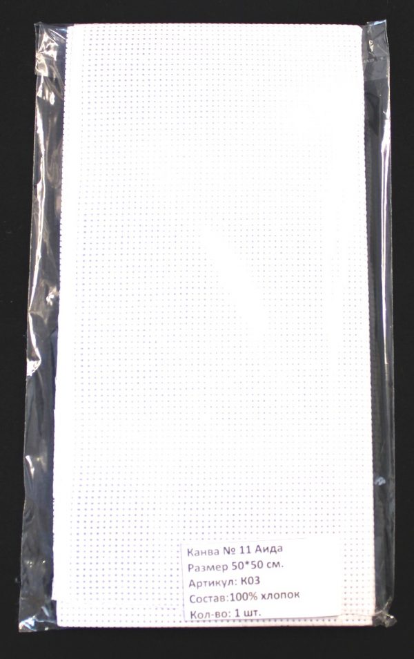 K03R, Канва Aida № 11 Gamma, 50*50 см, 95% хлопок, 5% терилен, цвет белый
