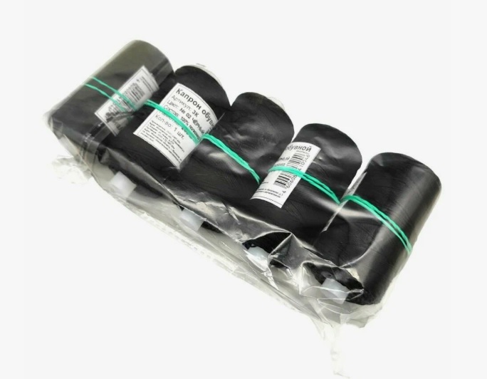 Капрон обувной 7К, намотка 200 метров, цвет черный, упаковка 5 бобин, цена указана за упаковку
