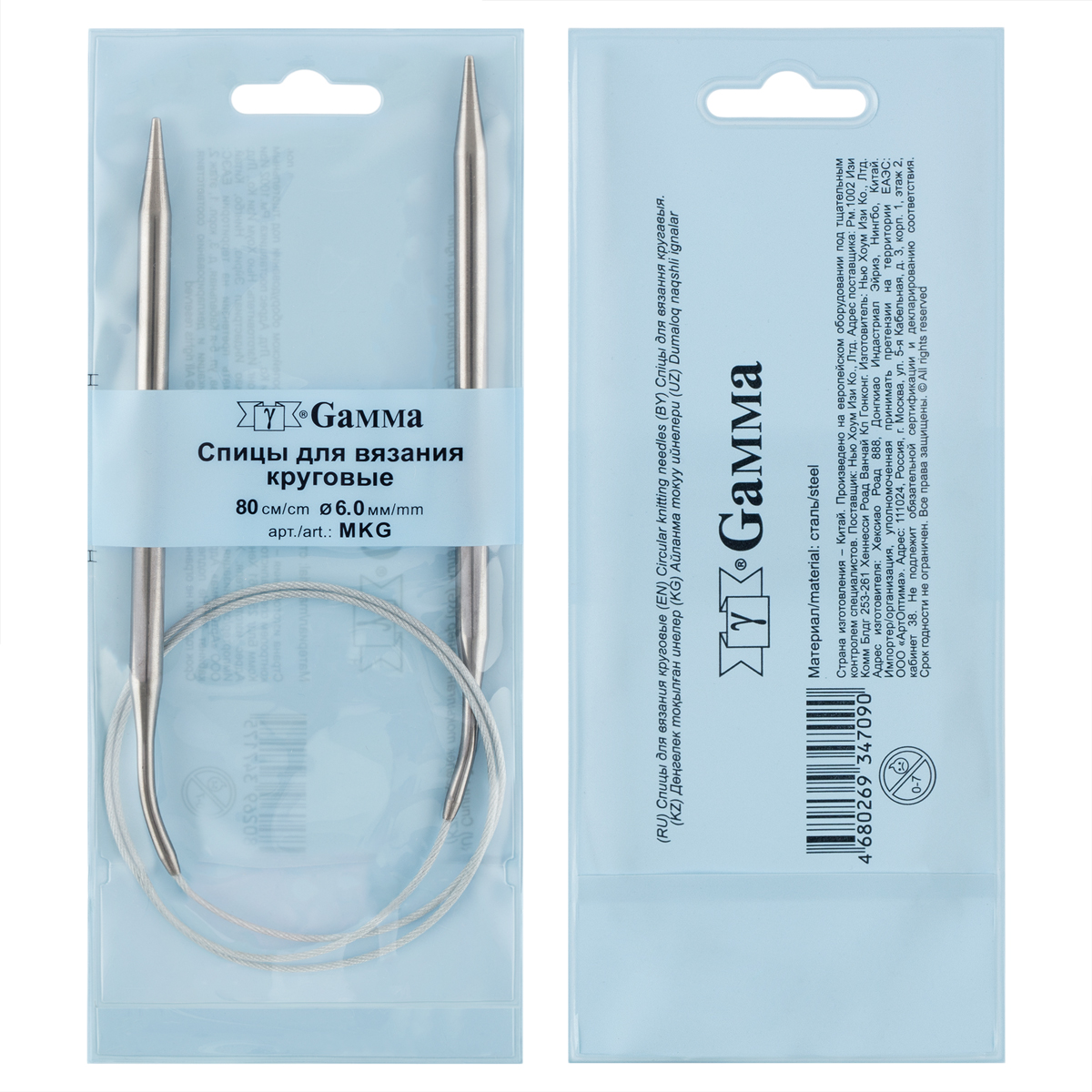 MKG, Спицы GAMMA круговые сталь d 2,5 мм 80 см с металлической леской