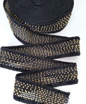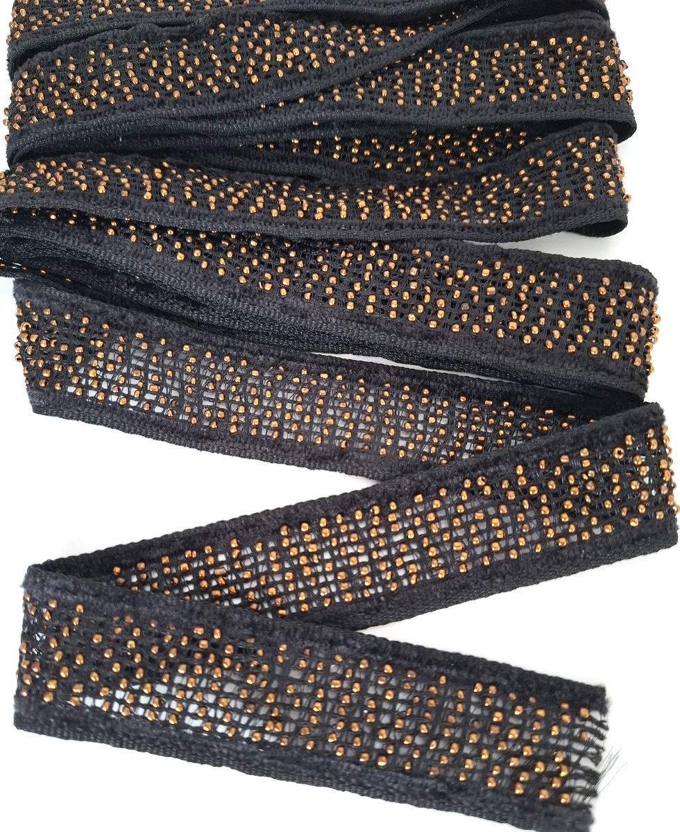 Тесьма Сетка с бисером, ширина 2,8 см., цвет черный (бисер бронза), упаковка 2 метра, цена за упаковку