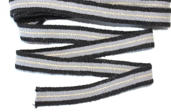ТЛ-1222-05, Тесьма трикотажная лампас с полосой из люрекса, цвет черный/коричневый, ширина 20 мм., упаковка — 5 метров, цена за упаковку