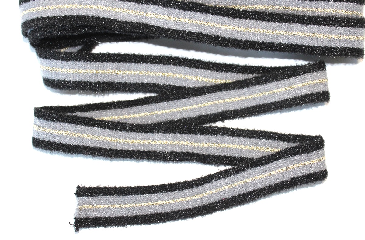 ТЛ-1222-05, Тесьма трикотажная лампас с полосой из люрекса, цвет черный/молочный, ширина 20 мм., упаковка — 5 метров, цена за упаковку