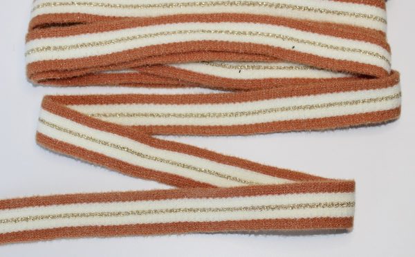 ТЛ-1222-05, Тесьма трикотажная лампас с полосой из люрекса, цвет хаки/молочный, ширина 20 мм., упаковка — 5 метров, цена за упаковку