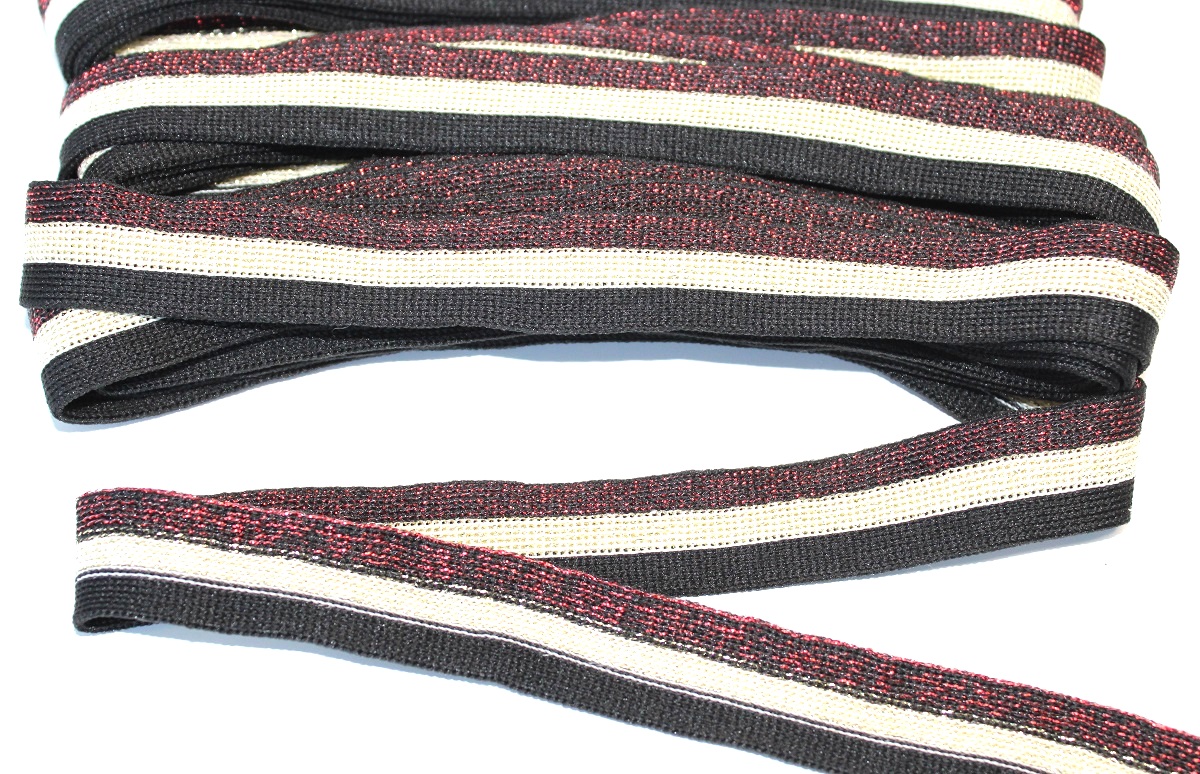 ТЛ-1222-05, Тесьма трикотажная лампас с полосой из люрекса, цвет черный/коричневый, ширина 20 мм., упаковка — 5 метров, цена за упаковку